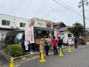 東海移動販売車組合事務所前でもランチタイムにキッチンカーでのテイクアウト販売を行う営業日を設けており、ご近所の皆さまに喜んでいただけている手応えを大いに感じています。