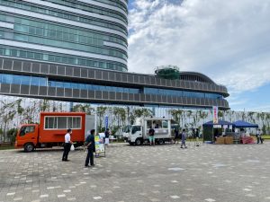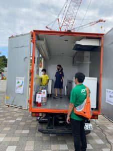 1台は展示用。キッチンカー内の設備をたくさんの方に見ていただきました。