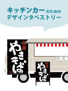 キッチンカー、屋台、露店等での販売時に使用できるデザインタペストリー(移動販売車用看板・幕・バナータペストリー)専門店です。