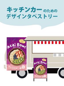 キッチンカー、屋台、露店等での販売時に使用できるデザインタペストリー(移動販売車用看板・幕・バナータペストリー)専門店です。