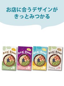 定番メニュー、季節メニュー、流行メニューのタペストリーが揃います。「新メニューを増やしたい」「期間限定で販売したいメニューがある」「初めてキッチンカーで営業する」というときにも、気軽に利用できます。