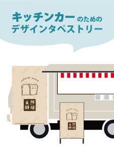 キッチンカー、屋台、露店等での販売時に使用できるデザインタペストリー(移動販売車用看板・幕・バナータペストリー)専門店です。