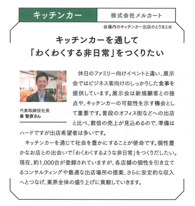 今後も、バラエティ豊かで魅力あるキッチンカーの提供を通じて、展示会のさらなる魅力向上に貢献してまいります。