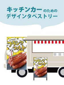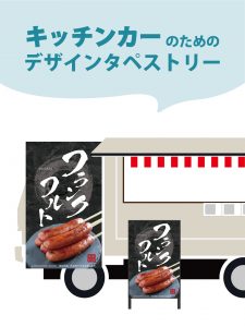 キッチンカー、屋台、露店等での販売時に使用できるデザインタペストリー(移動販売車用看板・幕・バナータペストリー)専門店です。