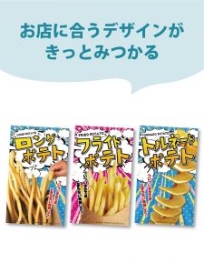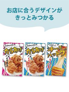 定番メニュー、季節メニュー、流行メニューのタペストリーが揃います。「新メニューを増やしたい」「期間限定で販売したいメニューがある」「初めてキッチンカーで営業する」というときにも、気軽に利用できます。