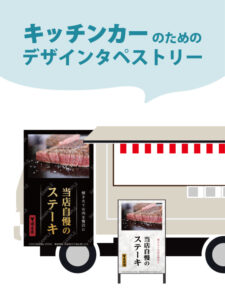 キッチンカー、屋台、露店等での販売時に使用できるデザインタペストリー(移動販売車用看板・幕・バナータペストリー)専門店です。