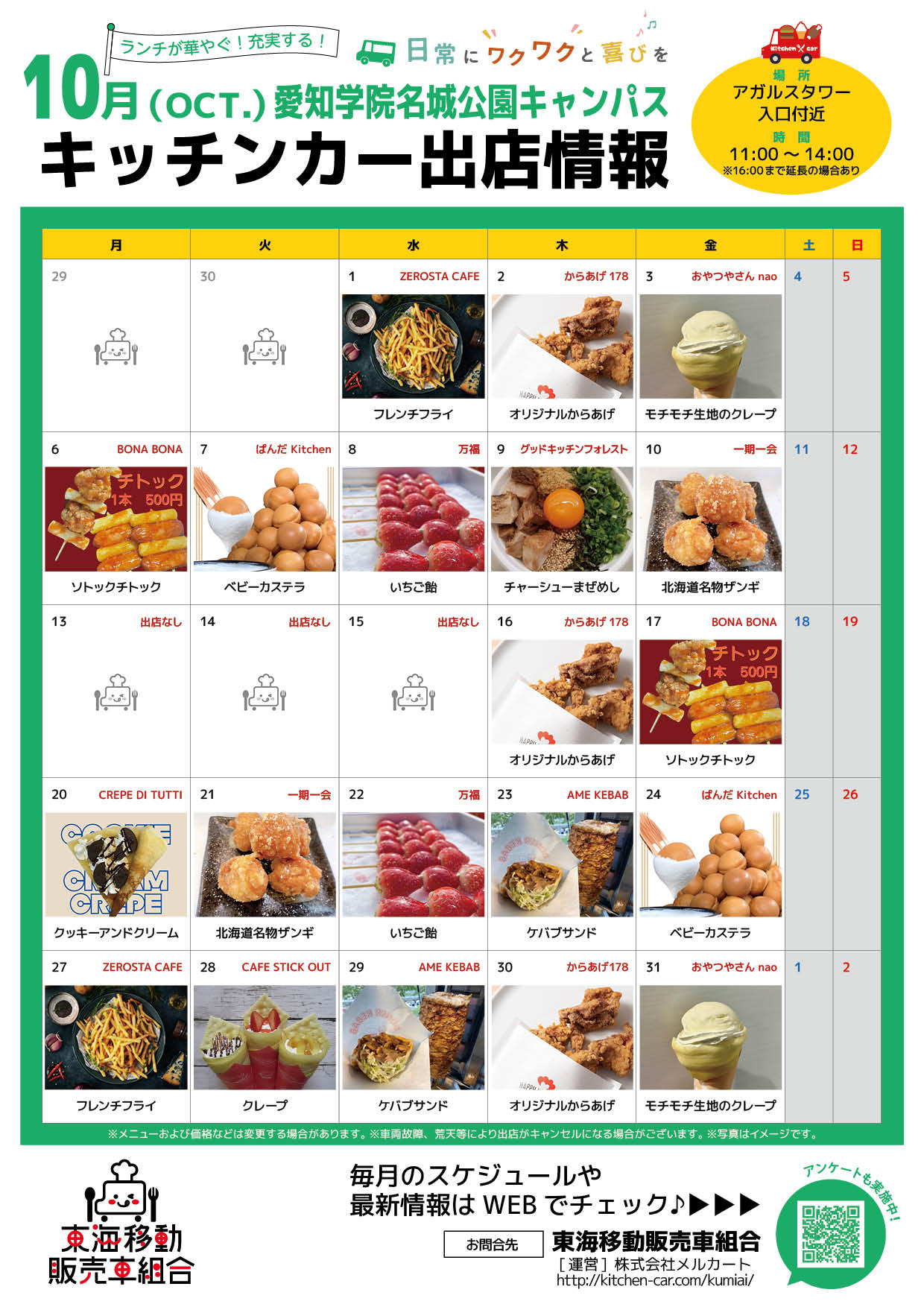 【ランチキッチンカー】愛知学院名城公園キャンパス キッチンカー出店情報