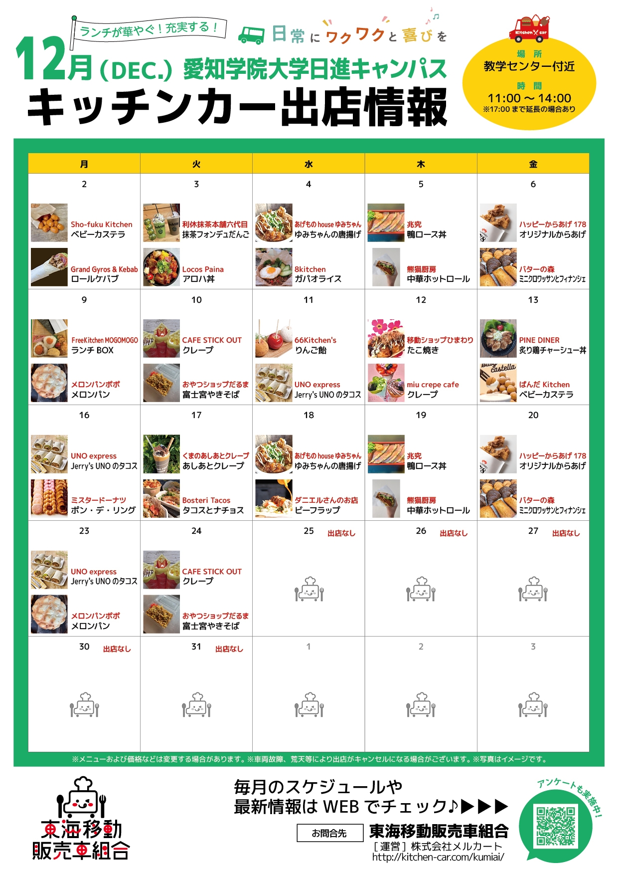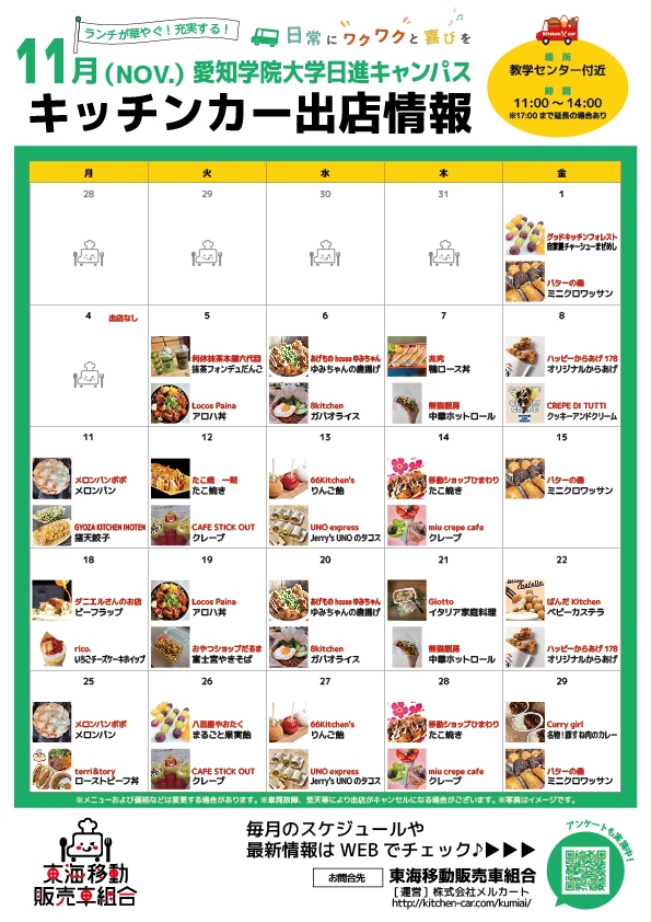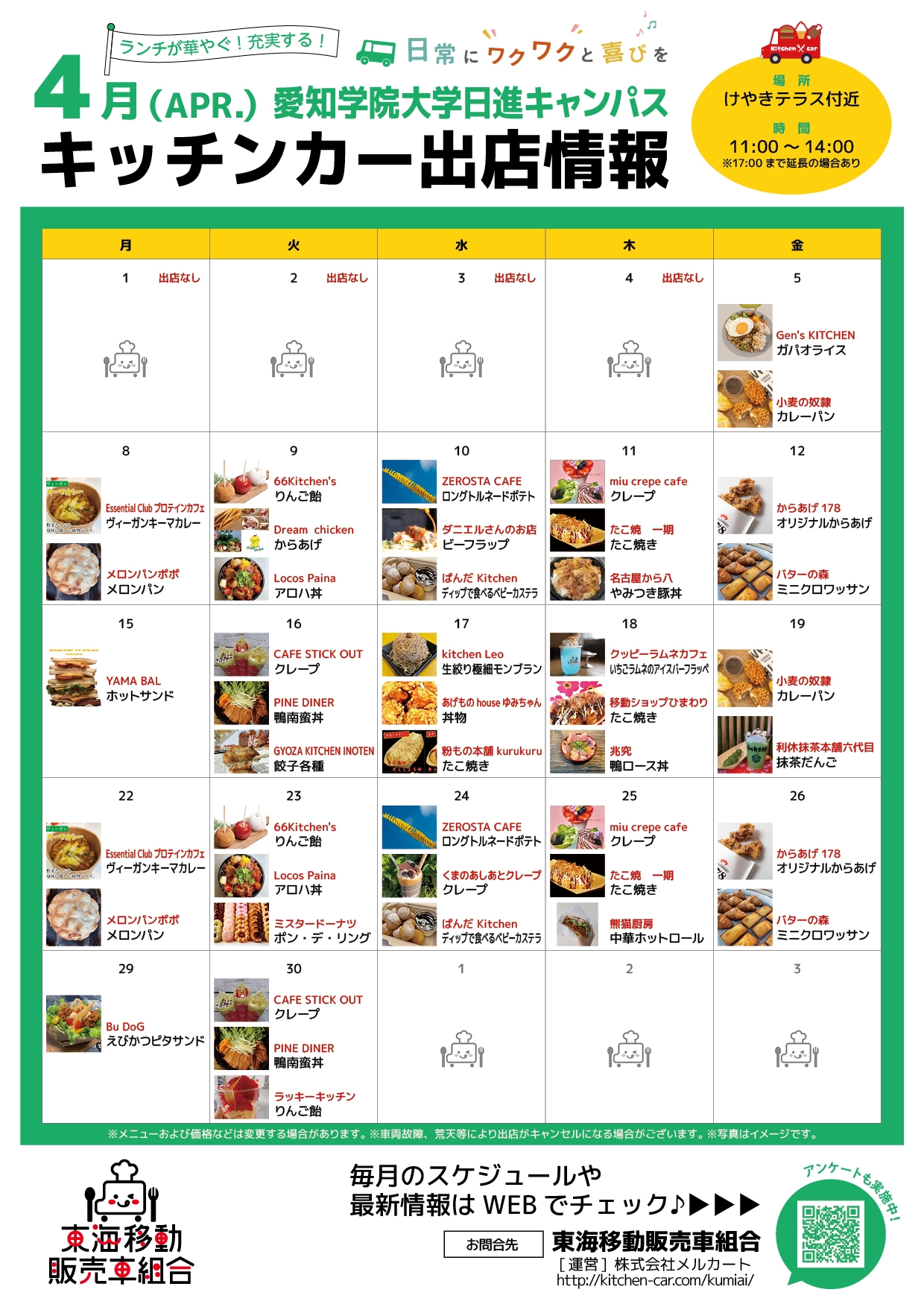 キッチンカーコラム 【ランチキッチンカー】愛知学院大学日進キャンパス キッチンカー出店情報