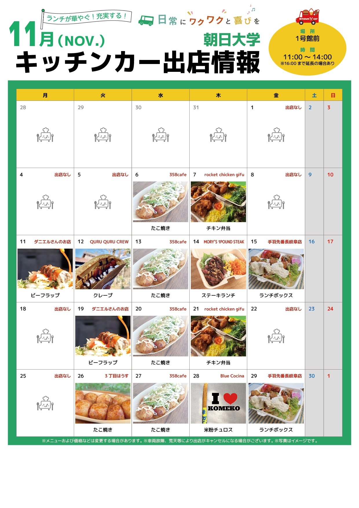 キッチンカーコラム 【ランチキッチンカー】朝日大学 キッチンカー出店情報