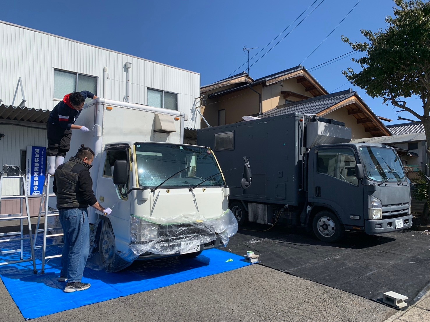 この日は、自社のレンタル車両の清掃と塗装を実施。プロによるクリーニングも対応できるので、ご希望の方はお問合せください。