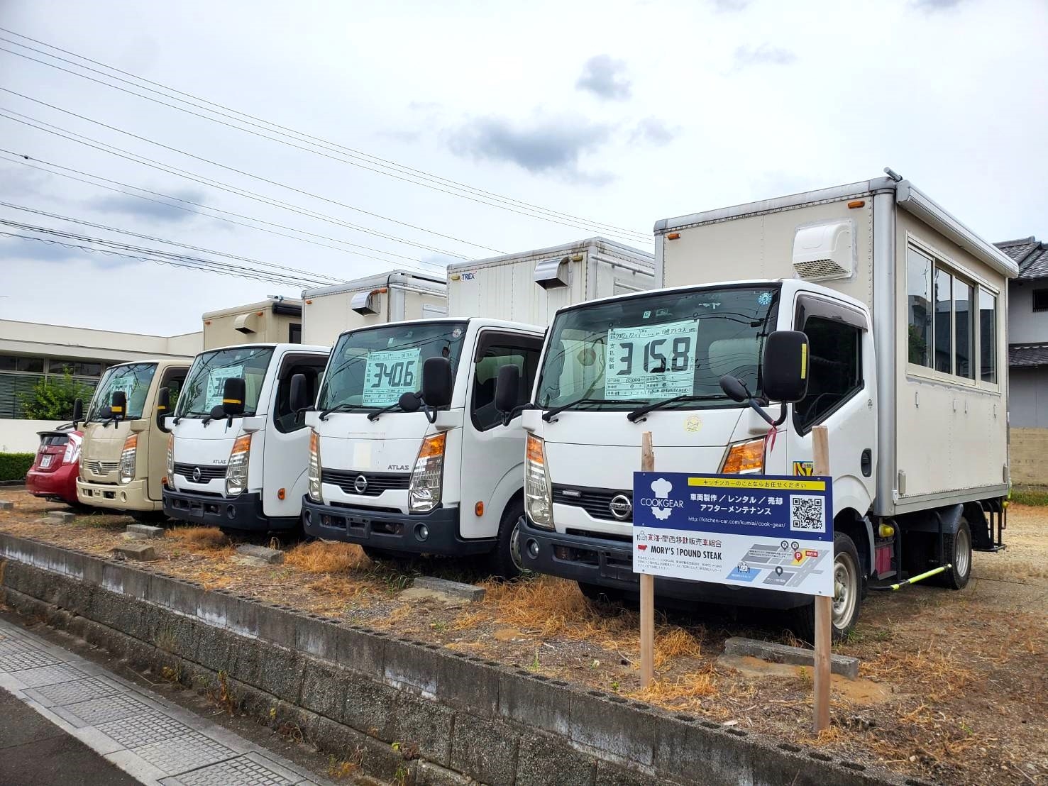 岐阜県各務原市にあるCOOKGEAR(クックギア)車両展示スペースでは、すぐに購入可能なキッチンカー車両を展示しています。