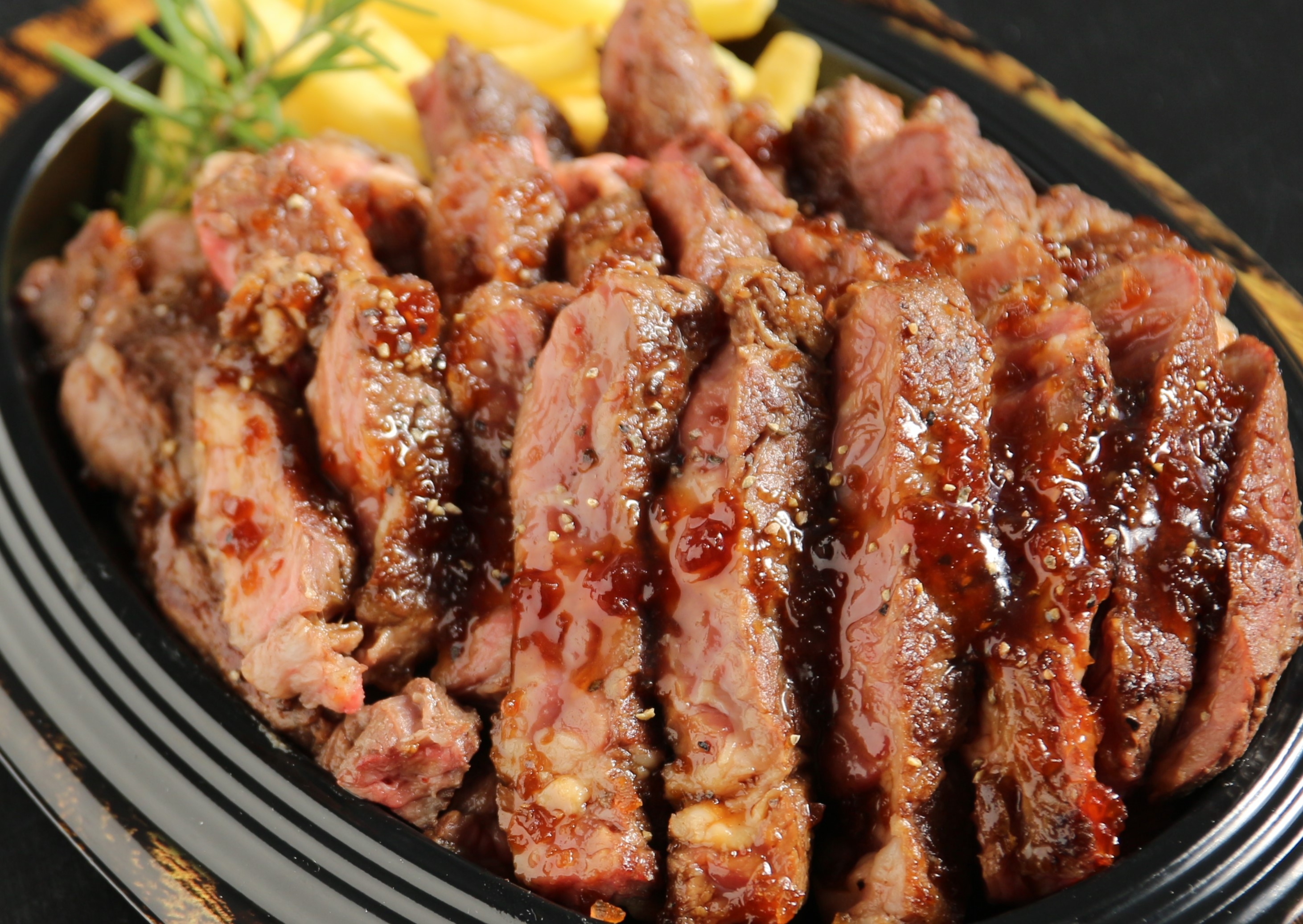 まずはやっぱり、お肉をがっつり食べられることですね。ステーキらしさをしっかり楽しんでもらえるよう、お肉の厚み、焼き加減にこだわっています。表面は香ばしく、中はジューシーに。食べやすく切って提供するので、本格的なステーキなのに箸で手軽に食べてもらえるのも特徴です。