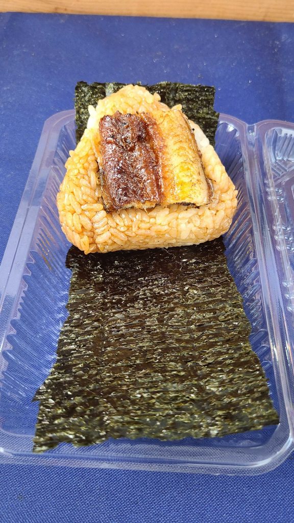 うなむす350円。秘伝のたれが馴染んだ香ばしいおむすびとうなぎを手軽に楽しめる。