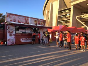 10月7日(日)、愛知県豊田市の豊田スタジアムでは、名古屋グランパス vs FC東京 の試合が行われました。実施されたイベント「ガールズフェスタ」にちなみ、東海移動販売車組合が運営するスタジアムグルメでもスイーツの移動販売車(キッチンカー・フードトラック)を出店! もちろん、通常のスタジアムグルメもいつも通り大充実です!