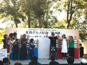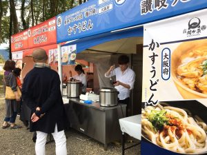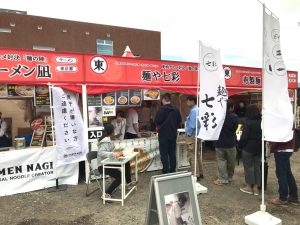 そのなかで「食」の部分を彩ったのが、東西グルメ対決「麺の陣」。東日本と西日本の面(ラーメン、うどん、焼きそば)の有名店が関ケ原に集結し、東軍西軍に分かれて味の自慢対決をくり広げました。東軍10店舗、西軍10店舗の全20店舗が、来場者の投票により雌雄を決します。