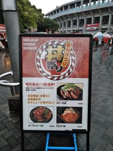 この日はスタジアムグルメで「丼祭り」が行われ、ステーキ丼、ローストビーフ丼、エビチリ丼が参戦!