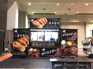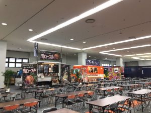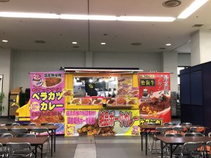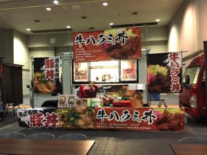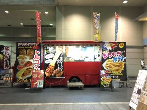 しかも、今回は館内と屋外それぞれで同時出店。機動力抜群、現場に合わせた出店を臨機応変にできる東海移動販売車組合の移動販売車(キッチンカー・フードトラック)なら、こうした手配も一括窓口で対応できます(*^^*)