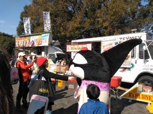 ↑「Jリーグマスコット総選挙2019」で史上初の2連覇を成し遂げたグランパスくんも、スタジアムグルメの応援に駆けつけてくれました。