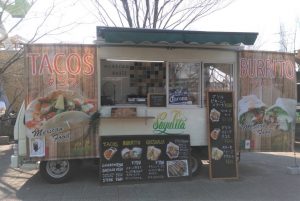 ↑この週末に出店していたキッチンカー。車いろいろ、メニューもいろいろ♪