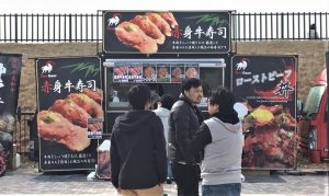 ↑4月28日(日)29日(月祝)に出店したキッチンカー。天皇賞にふさわしいごちそうグルメをご用意。大好評でした!