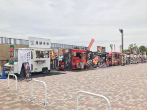 平成から令和へと移り変わる今年の記念すべきレースに、東海移動販売車組合より選りすぐりのキッチンカーを出店手配。キッチンカーによるグルメフェスティバルを開催させていただきました。