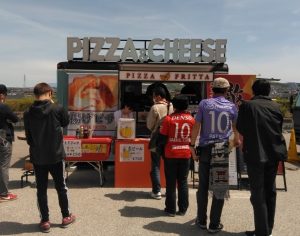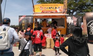 こちらも忘れてはいけません。名古屋グランパスホームゲームにて実施している東海移動販売車組合によるスタジアムグルメ。4月28日(日)に豊田スタジアム(愛知県豊田市)で行われたサンフレッチェ広島戦では、お好み焼き、たこ焼き、焼きそば、クレープ、メロンパンなど、あらゆる粉もんフードが集合する『粉もん祭り』を開催しました。