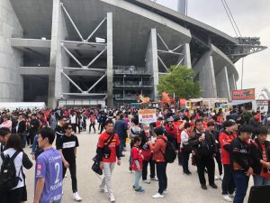 今回のサンフレッチェ広島戦、豊田スタジアム(愛知県豊明市)への来場者数は4万人。試合結果も 1-0 と勝利!! スタジアムグルメも大盛況で、とてもたくさんのサポーターの皆さまにご利用いただきました。
