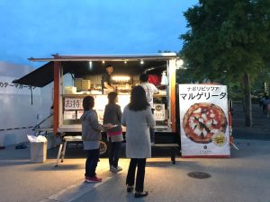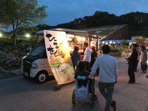 5月18日(土)には幻想的にライトアップされた夜のバラ園を楽しむ「ナイトローズガーデン」が開催されました。もちろんキッチンカーも夜まで営業!ナイトローズガーデンは今週末25日(土)、6月1日(土)にも開催されます。
