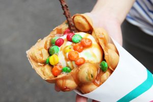 ↑特にお昼前後にはどのキッチンカーも行列が予想されます。スイーツ系はお昼~営業終了まで行列が途切れない店舗も。