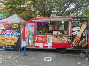 河川環境楽園オアシスパークでは、週末はもちろん平日にもキッチンカーが出店しています。