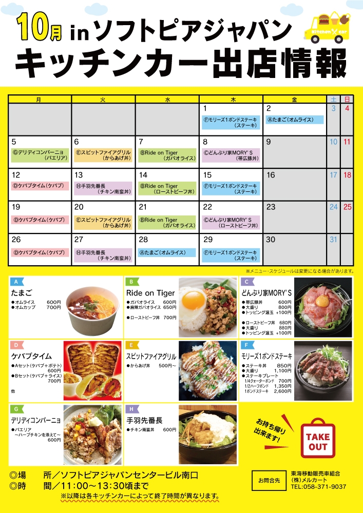 イベント情報 10月出店!キッチンカー移動販売によるオフィスランチ@ソフトピアジャパン(岐阜県大垣市)