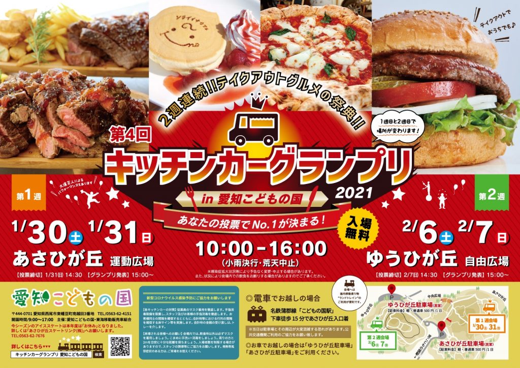 イベント情報 ※中止※【愛知県西尾市】第4回キッチンカーグランプリin愛知こどもの国 1.30(土)31(日)2.6(土)7(日)テイクアウトグルメの祭典
