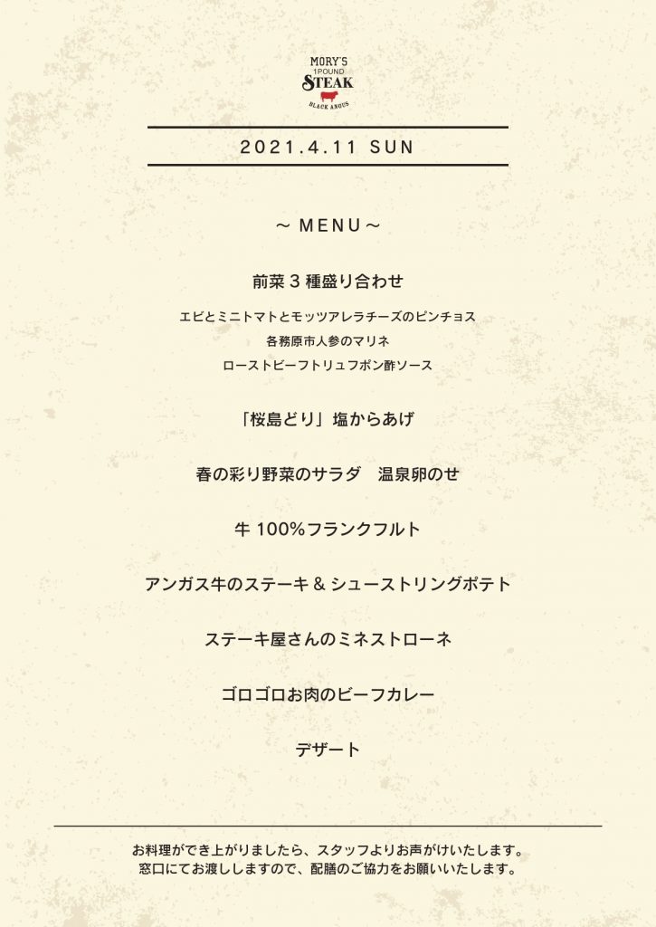 社員40名様に向けて、MORY’S 1POUND STEAK(モリーズワンポンドステーキ)がステーキをメインとしたフルコース料理を提供。
