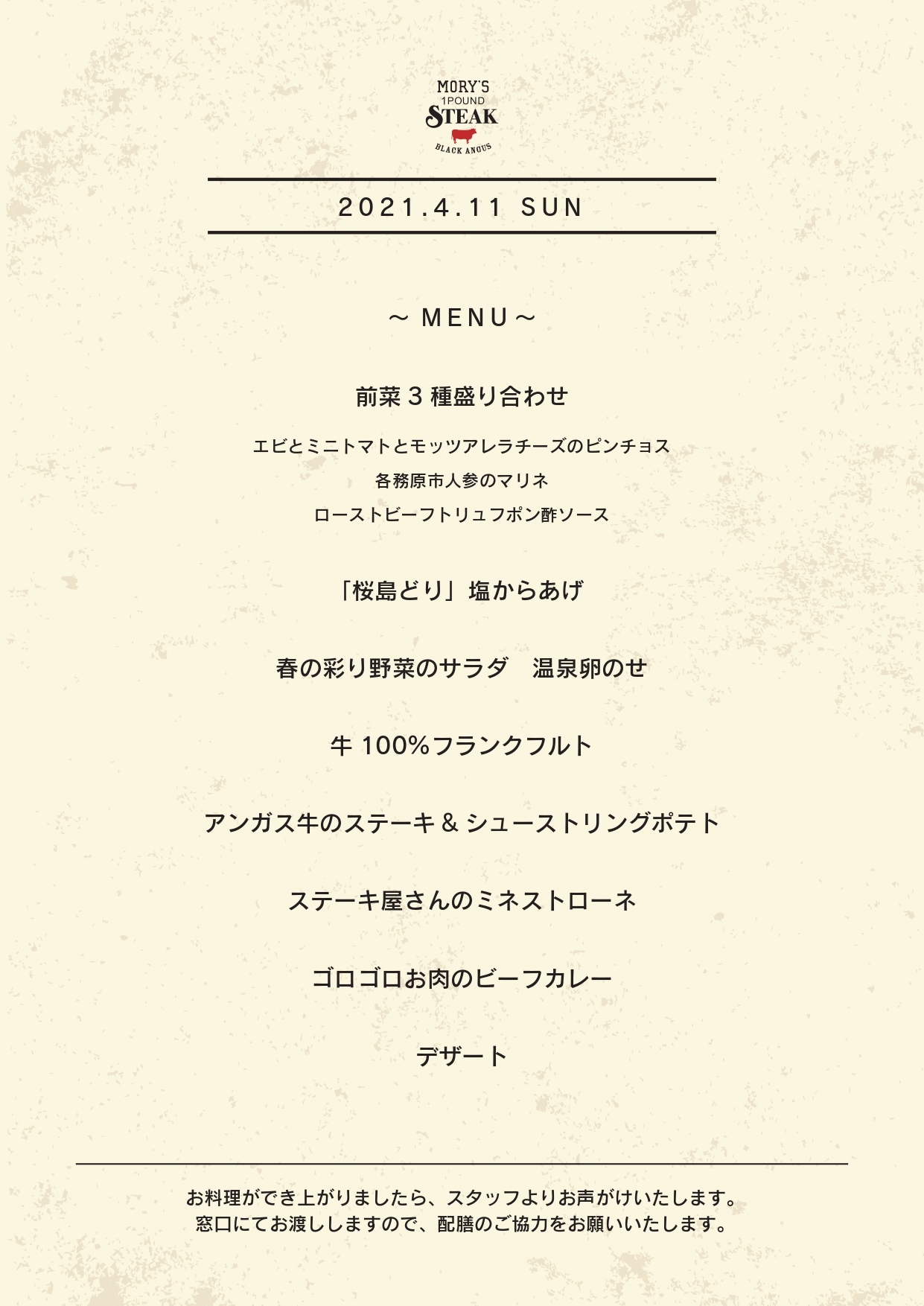 MORY’S 1POUND STEAK(モリーズワンポンドステーキ)ならではのステーキはもちろん、ステーキ専門店ならではの自慢のメニューをたっぷり味わっていただきました^^