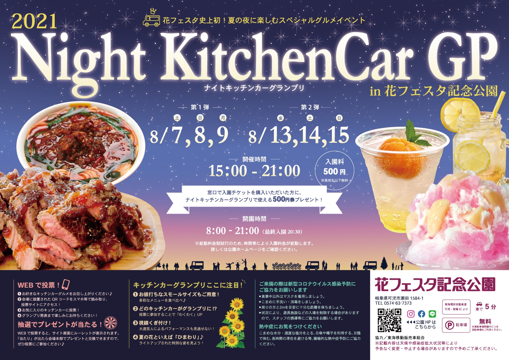 イベント情報 【岐阜県可児市】8.7(土)8(日)9(月)、13(金)14(土)15(日)史上初!夏の夜に楽しむスペシャルグルメイベント「ナイトキッチンカーグランプリin花フェスタ記念公園」開催!