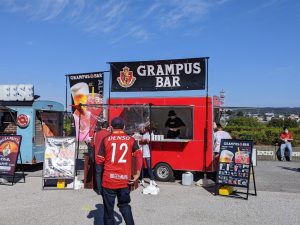 歓喜冷めやらぬ11月3日(水祝)、豊田スタジアム(愛知県豊田市)では明治安田生命J1リーグ 第34節:名古屋グランパス vs 柏レイソルが行われました。東海移動販売車組合のキッチンカーによるスタジアムグルメ(スタグル)も、YBCルヴァンカップ優勝を受け大盛り上がり。サポーターの皆さまとともに喜びを分かち合いました!