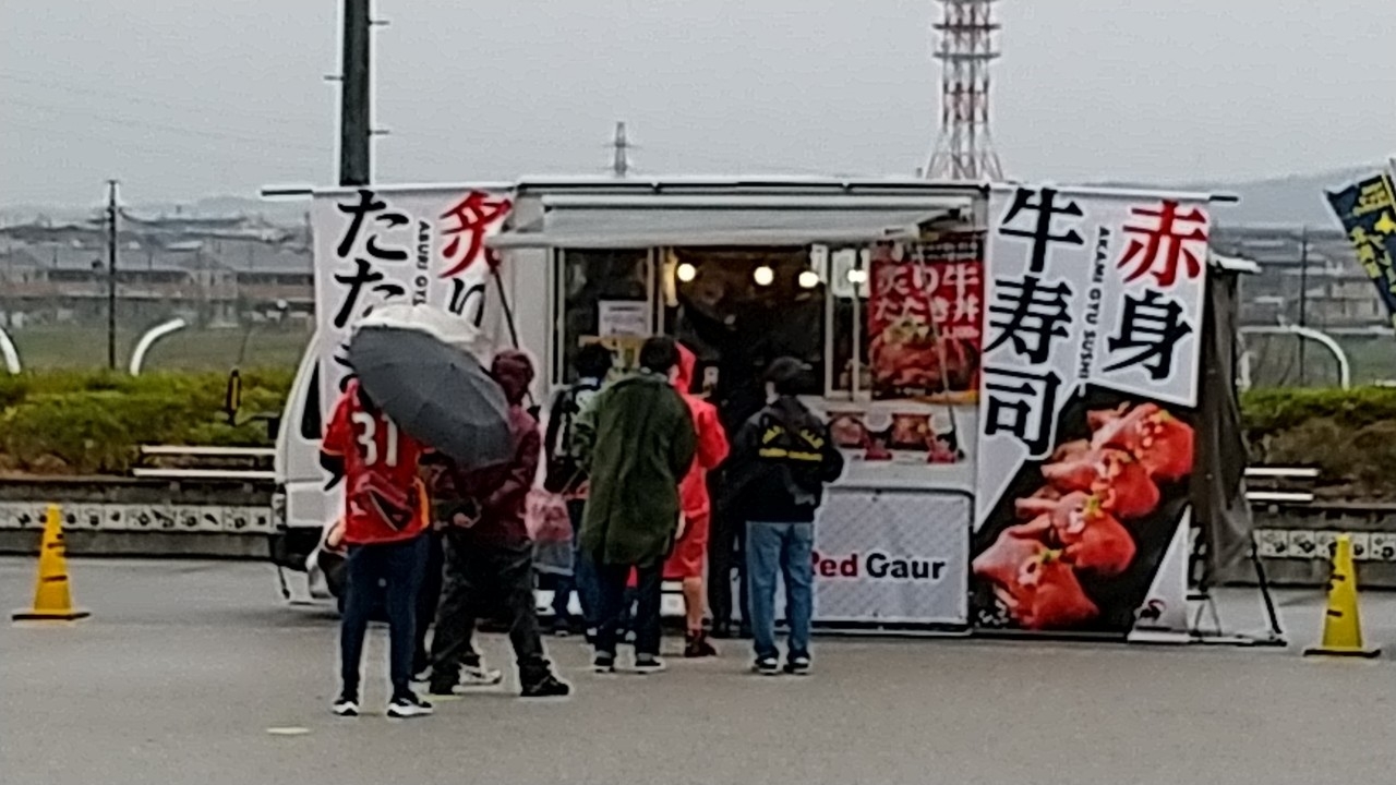 3 月26日(土)、雨の中多くの方が訪れたスタジアムグルメ。この日のテーマは「にんにく祭り」!!雨に負けない強力スタミナグルメで、サポーターの皆さまに元気をお届けしました!!