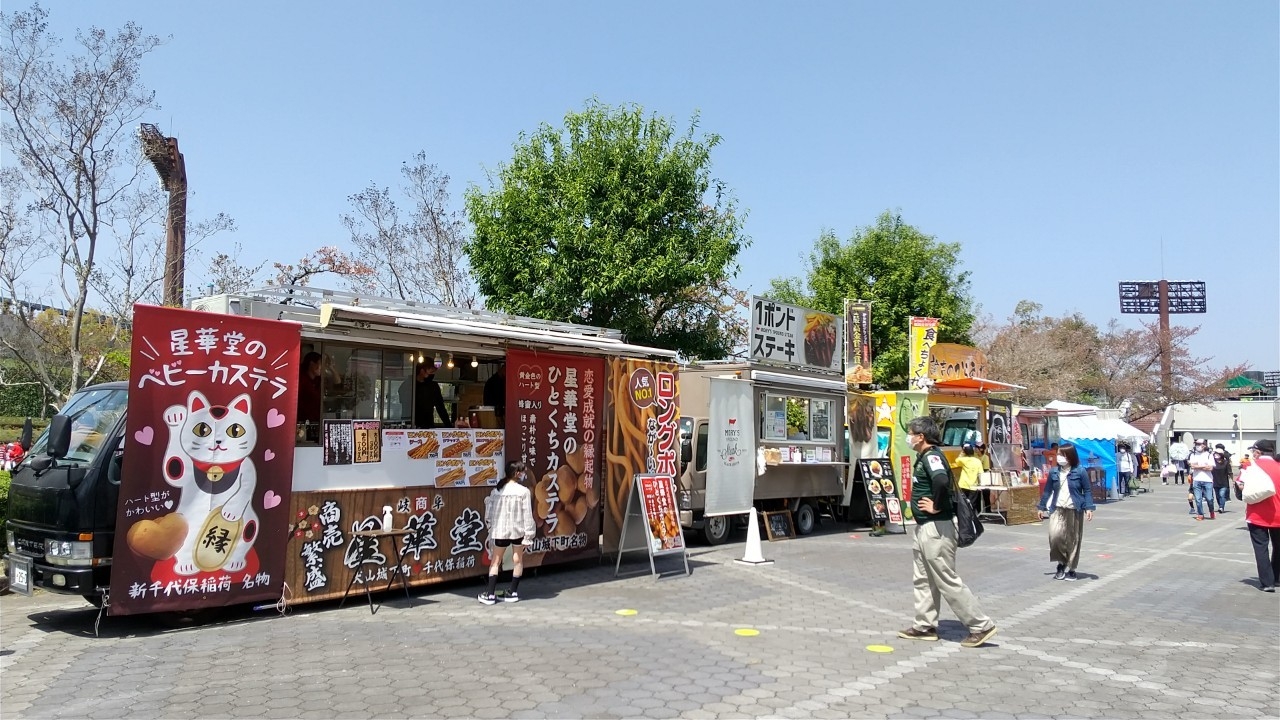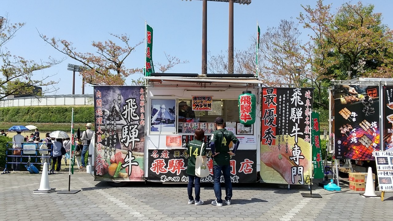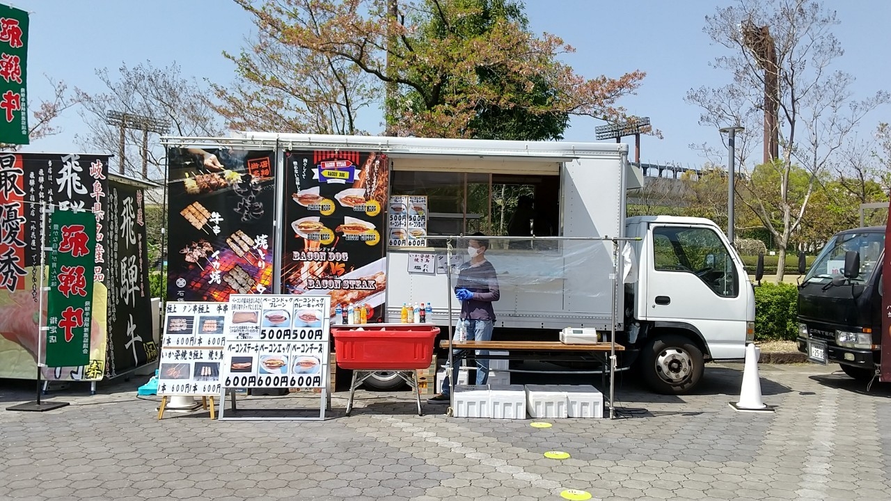 コロナ禍ということもありしばらくグルメ提供を見合わせていましたが、4月10日(日)に行われた試合では開催地の岐阜メモリアルセンターに多くのキッチンカーが並び、観戦に訪れたファンの皆さまに自慢のグルメをたっぷりお届けいたしました。