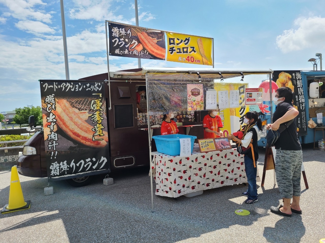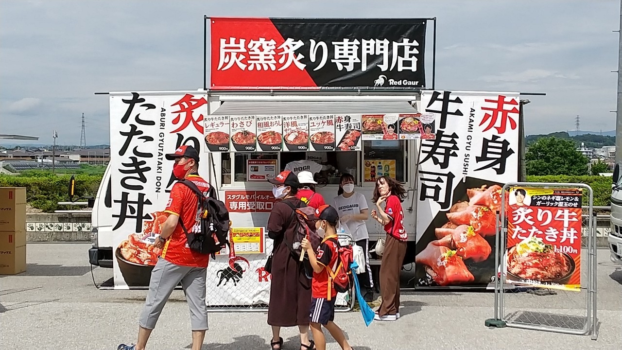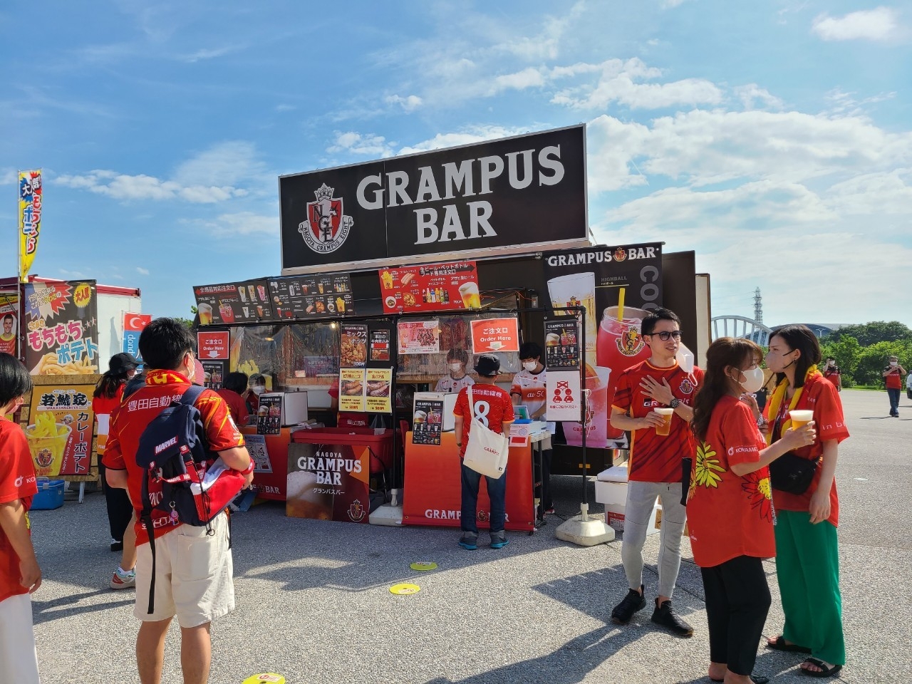 6月26日(日)豊田スタジアムで行われた試合には、18000人を超えるサポーターの皆さんが駆けつけ、名古屋グランパスの選手を応援。もちろん、東海移動販売車組合はサポーターの皆さまに美味しいスタジアムグルメを提供することで、その応援をさらに後押ししました!