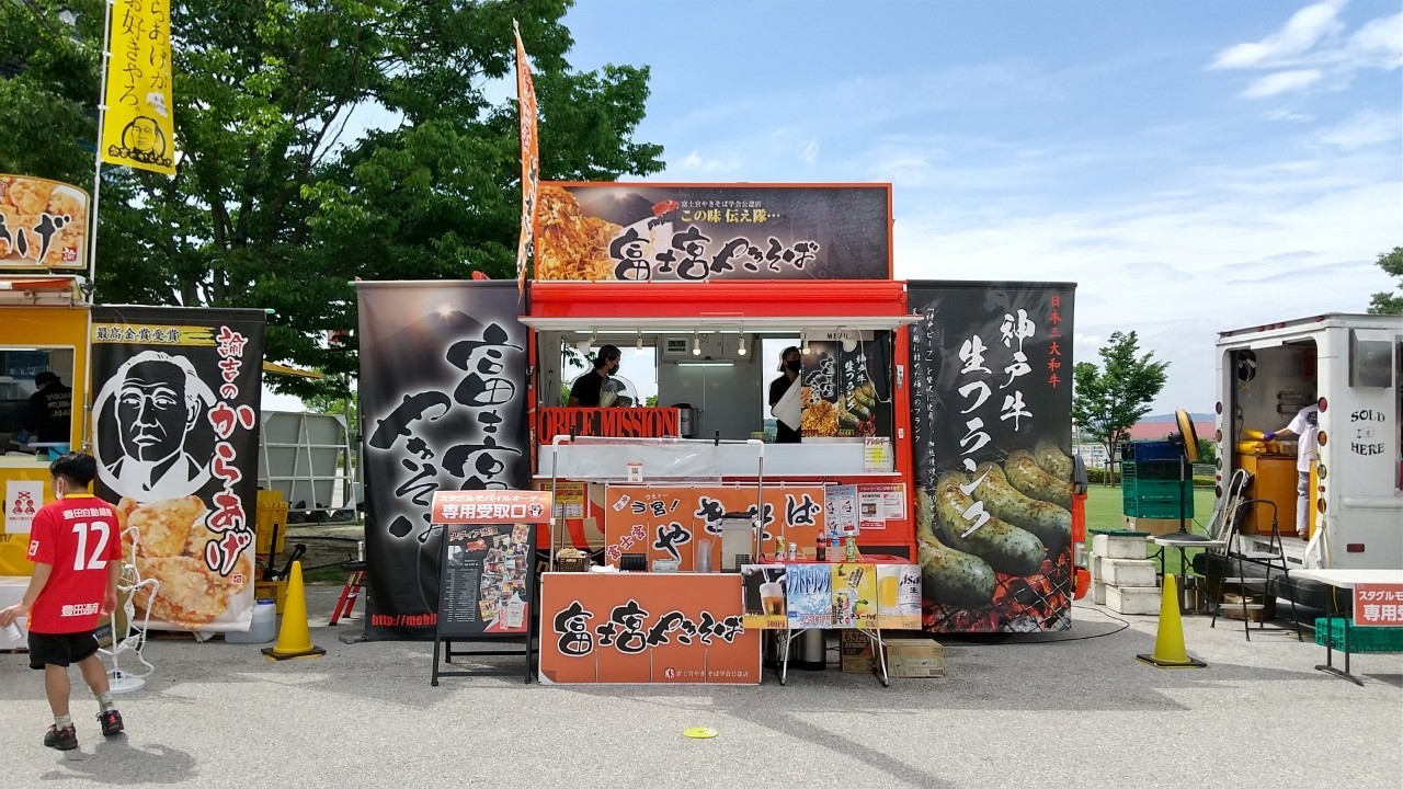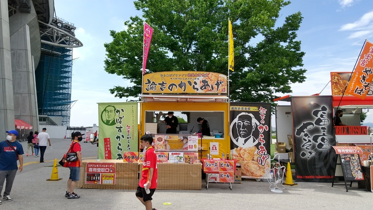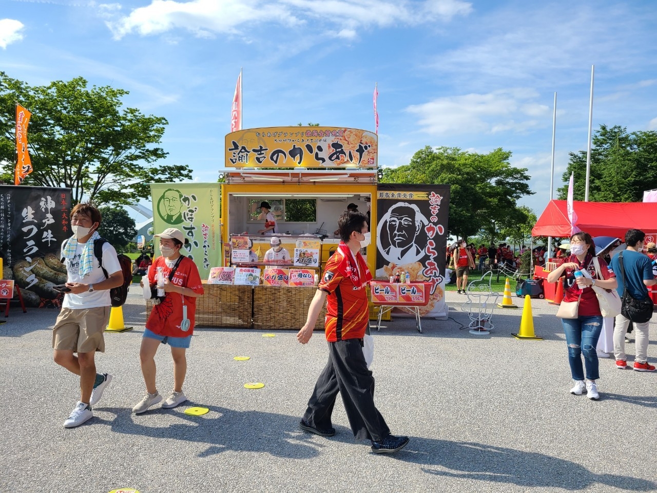 6月26日(日)豊田スタジアムで行われた試合には、18000人を超えるサポーターの皆さんが駆けつけ、名古屋グランパスの選手を応援。もちろん、東海移動販売車組合はサポーターの皆さまに美味しいスタジアムグルメを提供することで、その応援をさらに後押ししました!