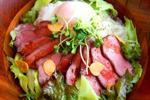 牛タンとシラスのあいがけ柚子塩焼きそば