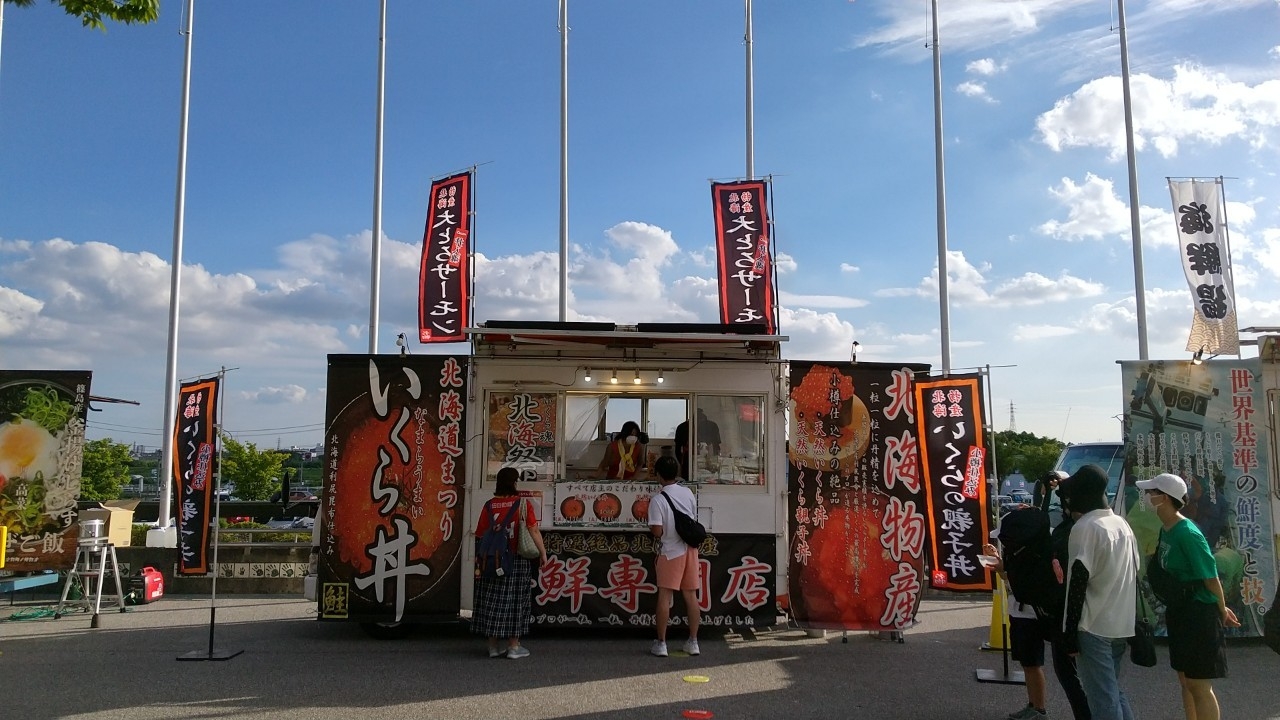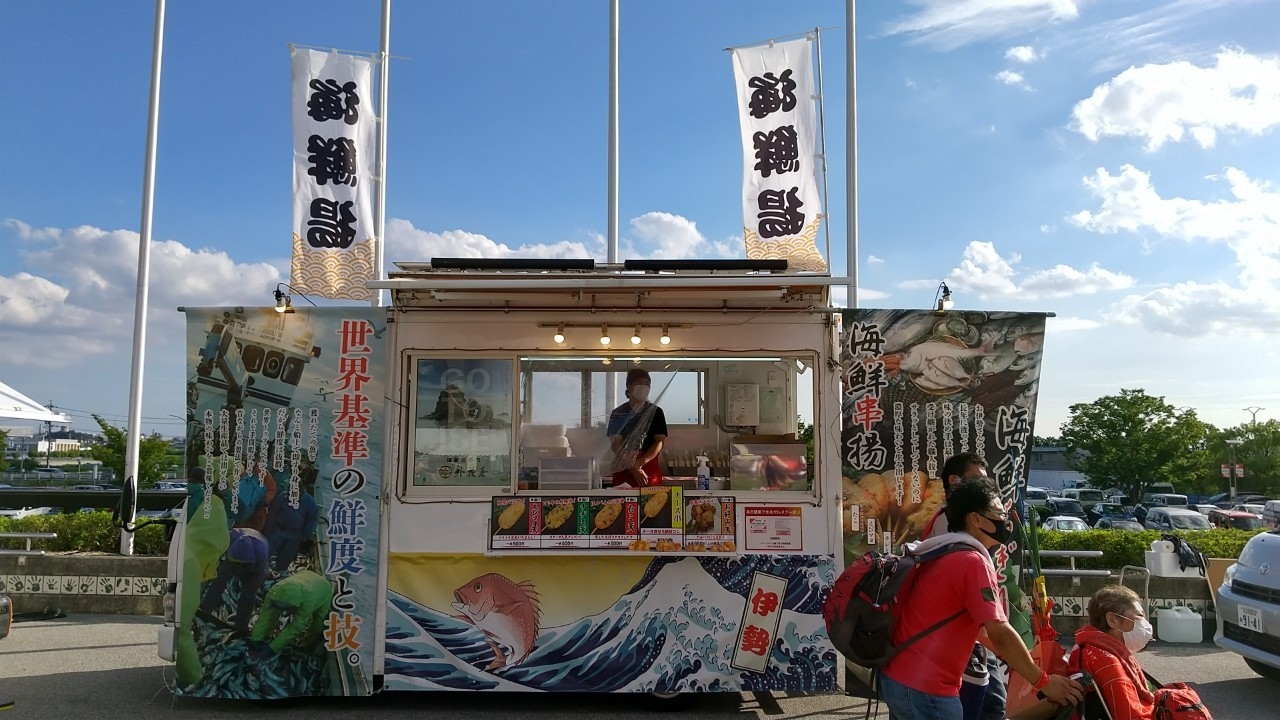 今回のスタジアムグルメは、シーフードフェス。海老・蟹・シラスと、海の幸がスタジアムに大集合!夏に美味しいシーフード自慢のキッチンカーが揃いました。