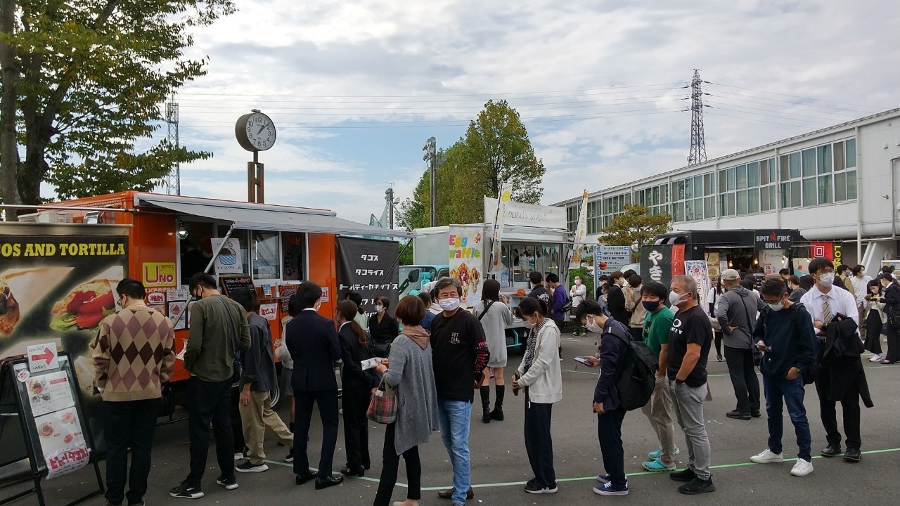 なんと、岐阜高専祭58回に及ぶ歴史のなかでキッチンカーを呼んでいただくのは今年が初めてとのこと。学生の皆さまの熱意に報えるよう、東海移動販売車組合のキッチンカーも存分に腕をふるいました。