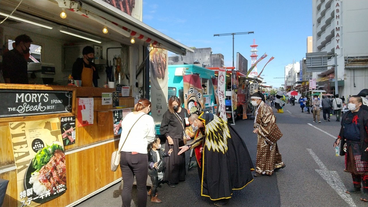東海移動販売車組合のキッチンカーは、11月5日(土)に金華橋通り(柳瀬付近)で行われた岐阜城戦国絵巻のストリートイベントの一環として出店し、来場された皆さまに自慢のキッチンカーグルメを提供しました。ご利用いただいた皆さま、ありがとうございました。