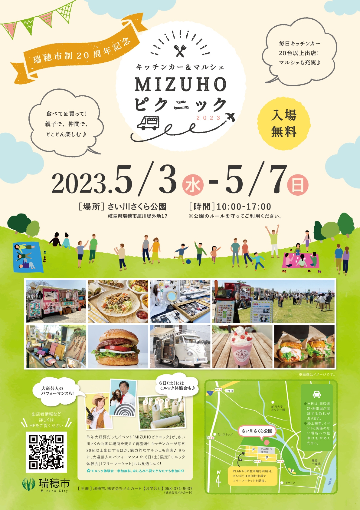 イベント情報 【岐阜県瑞穂市】5.3(水)~7(日)瑞穂市制20周年記念 キッチンカー&マルシェMIZUHOピクニック2023