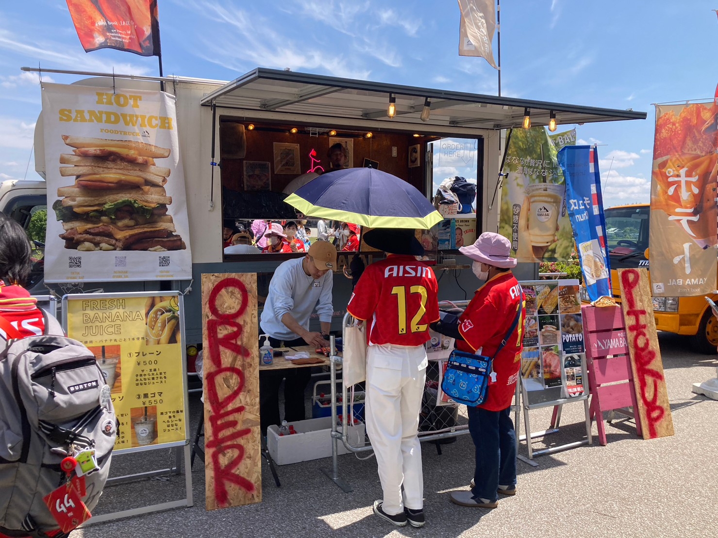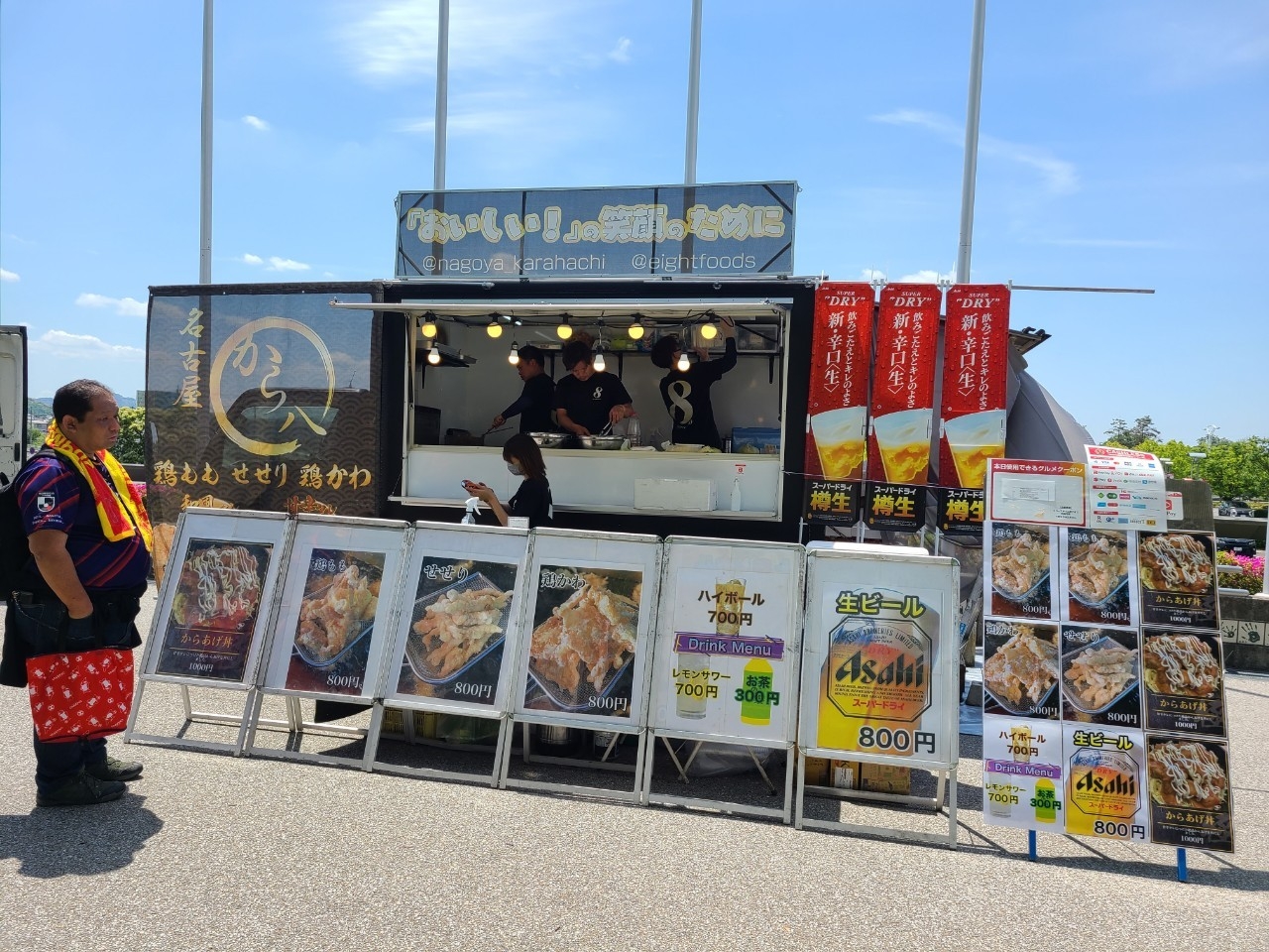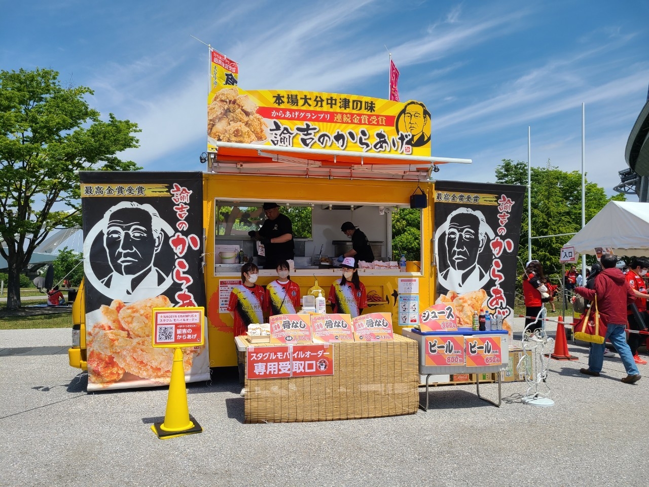 東海移動販売車組合は実力派のキッチンカーを派遣、今回のグルメテーマである「からあげ祭り」を通して多彩なからあげはもちろん自慢のメニューを提供し、選手はもちろんサポーターの皆さまの応援をしっかりさせていただきました!
