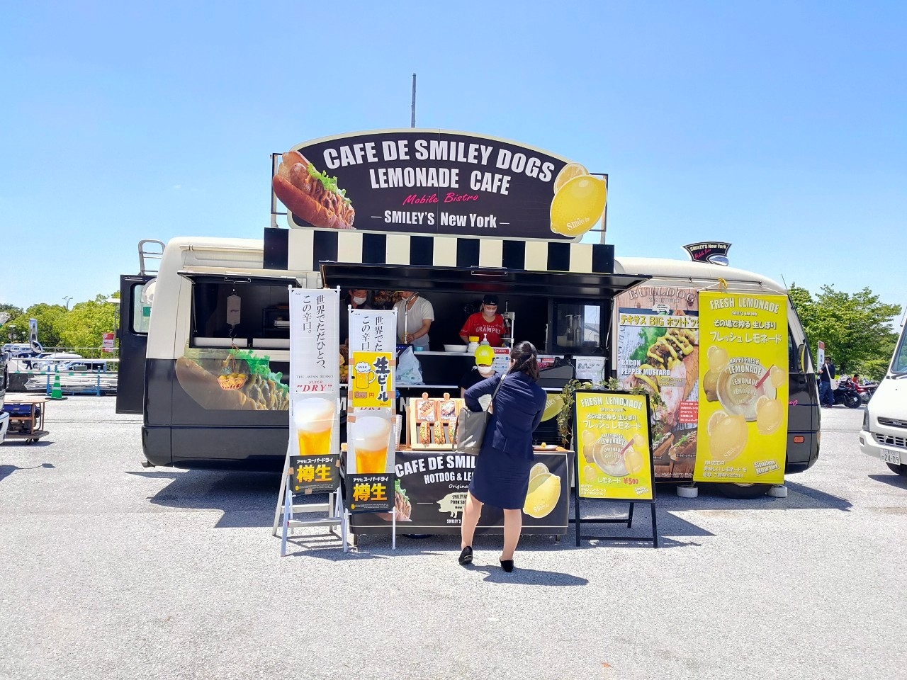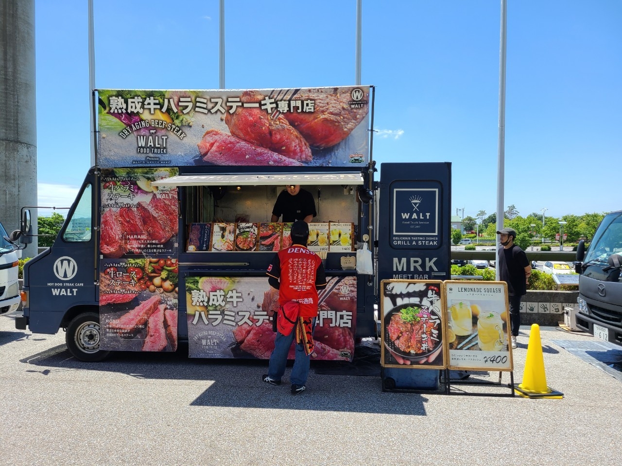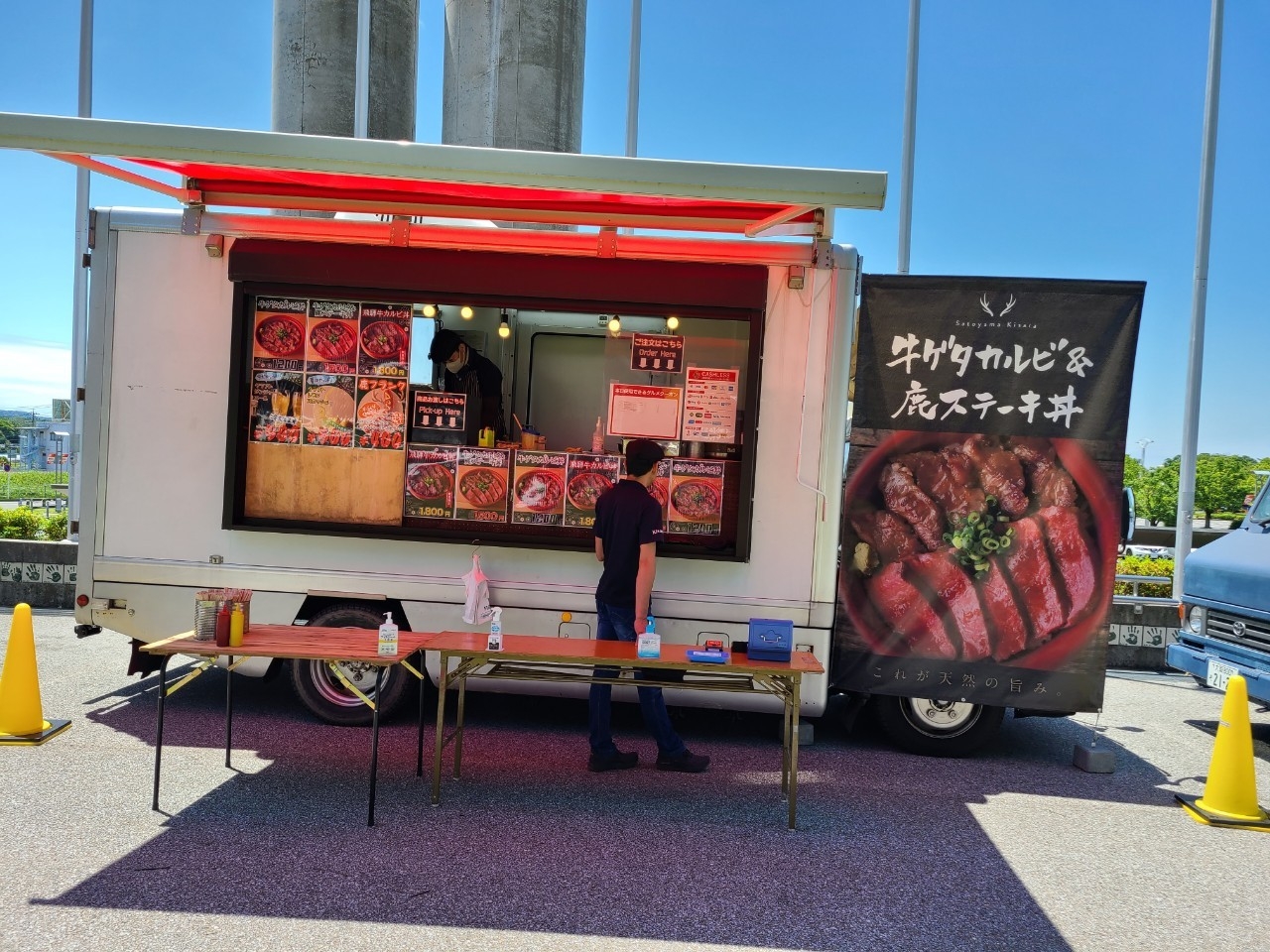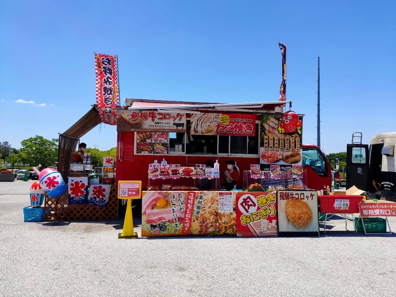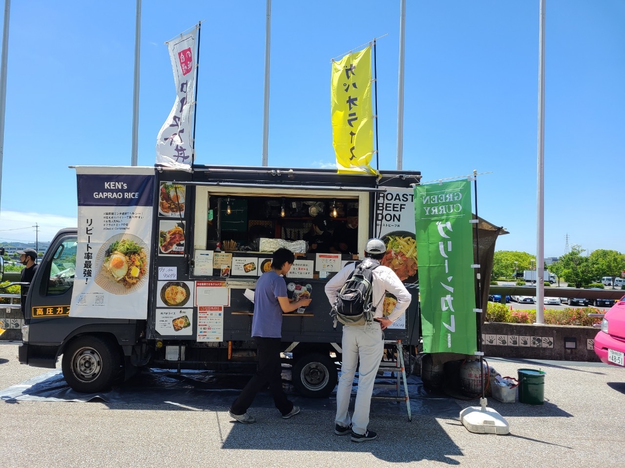 快晴の下並んだ東海移動販売車組合のキッチンカー。この日のスタジアムグルメでは「肉祭り#ビーフ」が行われ、美味しい牛肉メニューがずらり勢揃いしました。ご来場いただいた皆さま、ご利用いただいた皆さま、ありがとうございました!