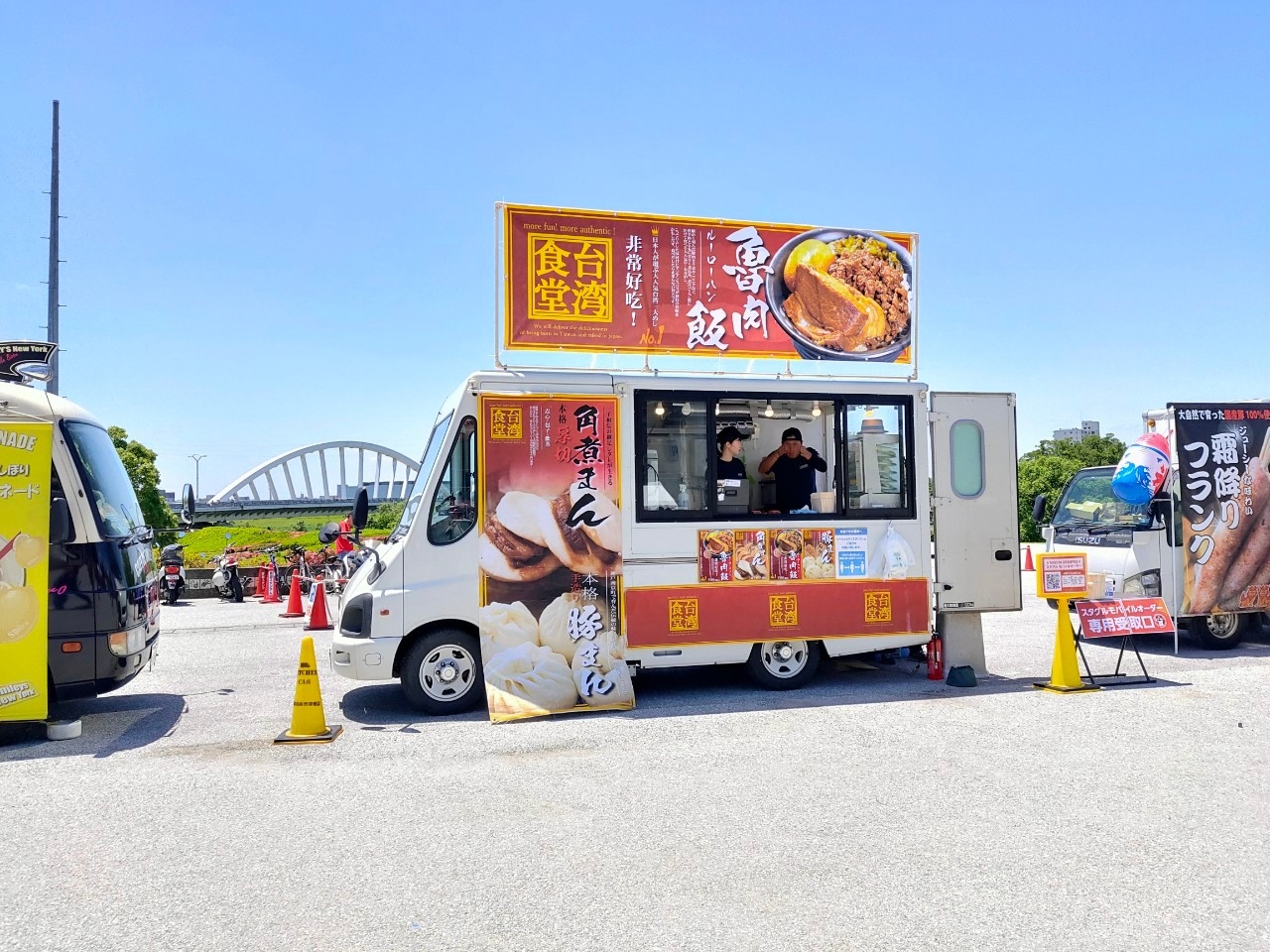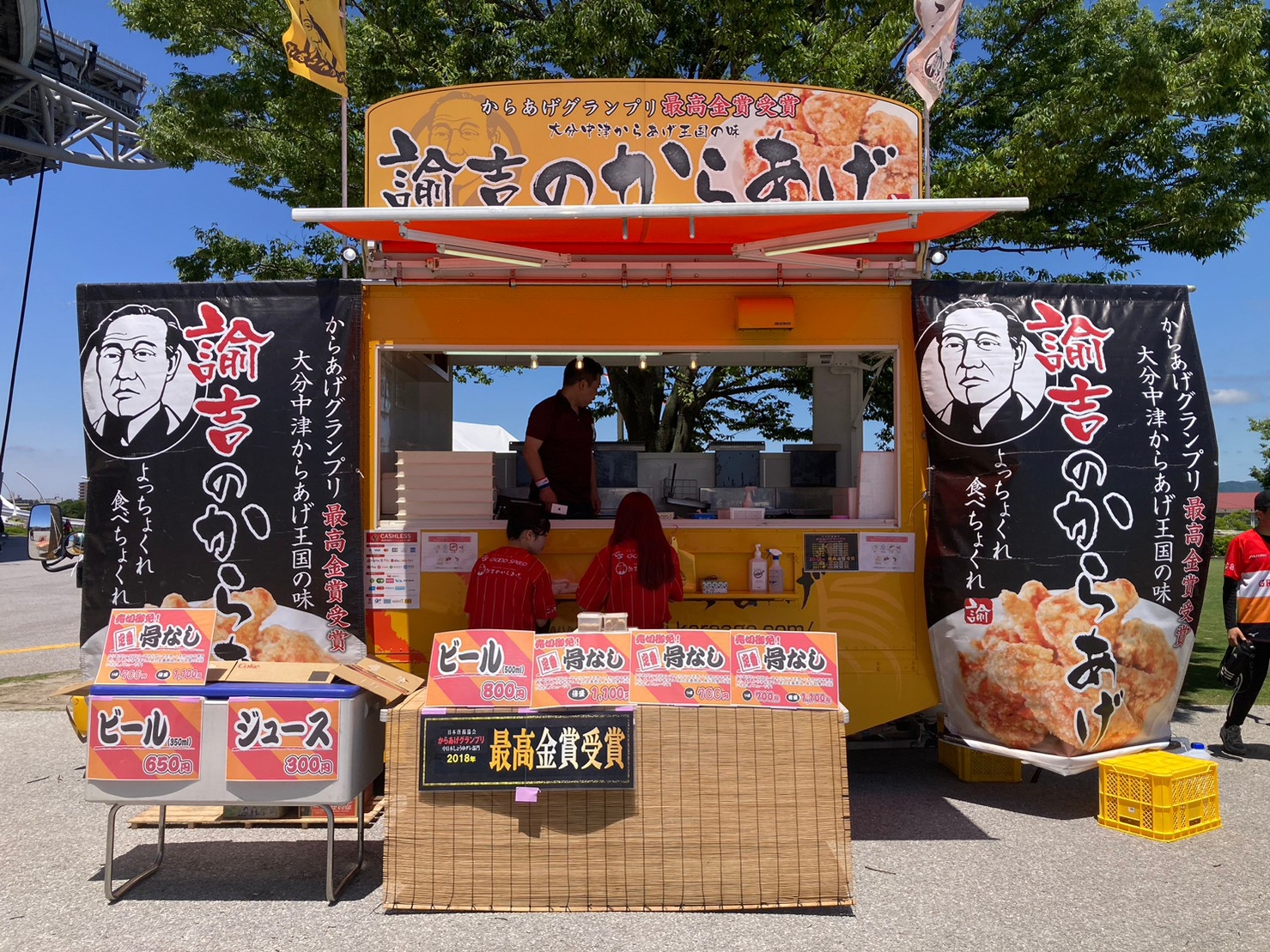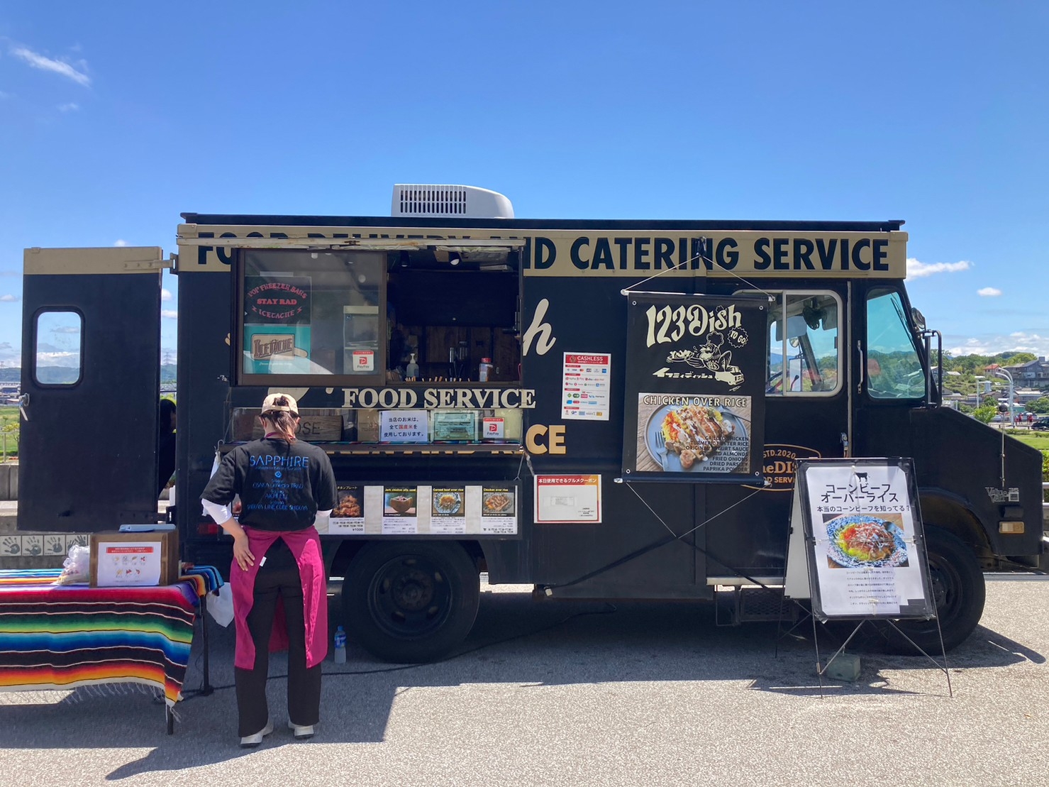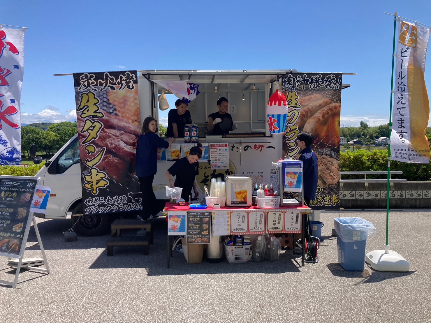 快晴の下並んだ東海移動販売車組合のキッチンカー。この日のスタジアムグルメでは「肉祭り#ビーフ」が行われ、美味しい牛肉メニューがずらり勢揃いしました。ご来場いただいた皆さま、ご利用いただいた皆さま、ありがとうございました!