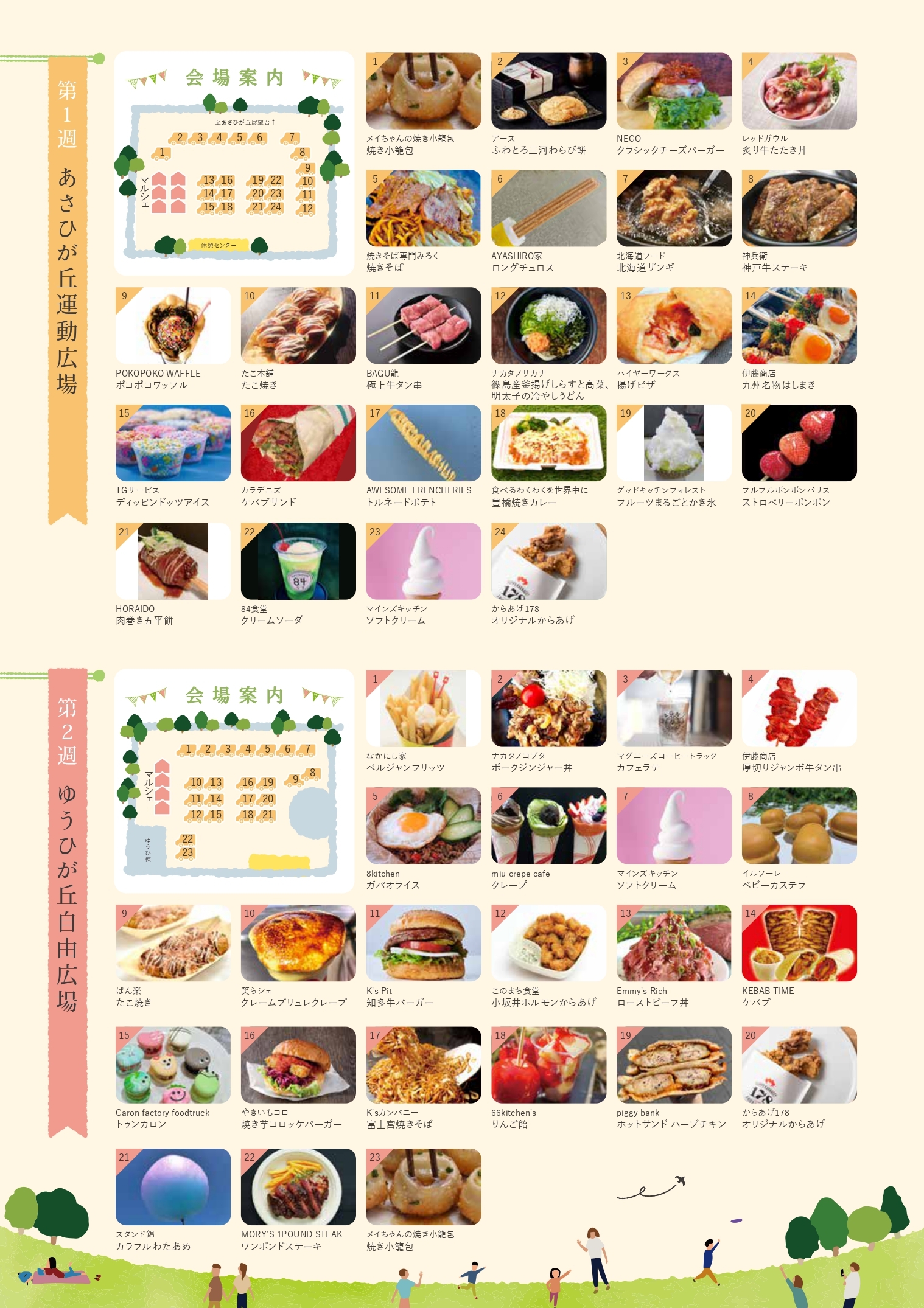 今週末6月3日(土)4日(日)には2週目が開催されます。会場がゆうひが丘自由広場に変わり、キッチンカーメニューもマルシェもがらりと入れ替わりますので、ぜひご来場ください!