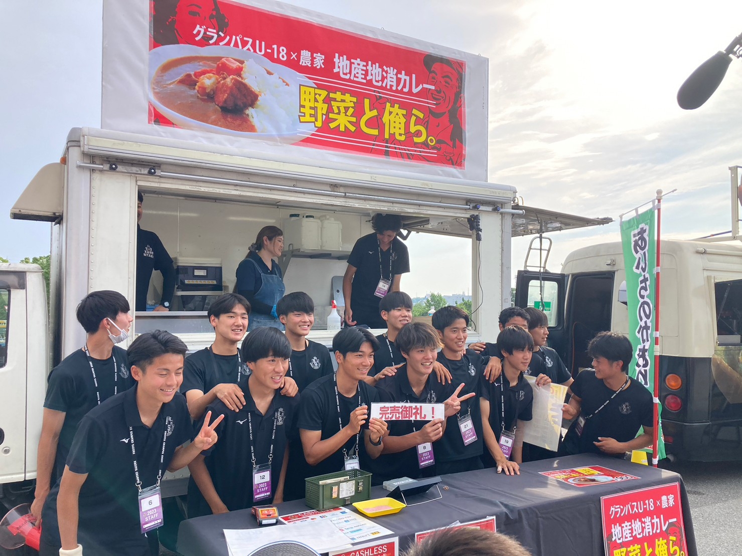 この日のスタジアムグルメでは、名古屋グランパスU-18の選手たちが製作に関わった、愛知県産の食材を活用した地産地消カレー「野菜と俺ら。」の販売も行われました。